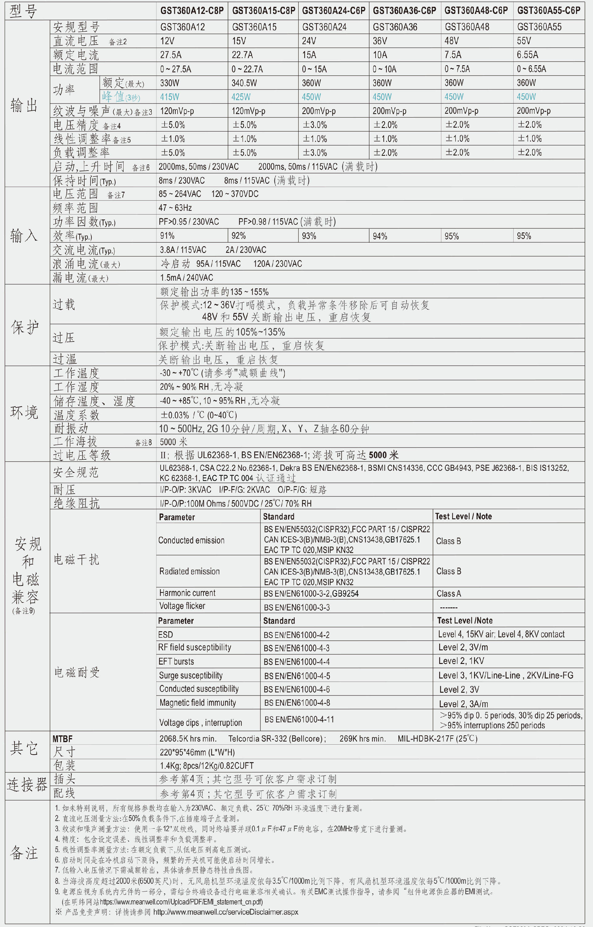 GST360A,GST360B系列是一款高信賴性,360W桌面型單組輸出綠色環(huán)保適配器,GST360A是classI電源(有FG接地),配備IEC320-C14標(biāo)準(zhǔn)AC接口;GST360B是classI電源(無FG接地)配備IEC320-C18標(biāo)準(zhǔn)AC接口,適合輸入電壓85VAC~264VAC應(yīng)用,整系列提供輸出電壓為12VDC至55VDC的不同型號,可滿足各種消費(fèi)類電子設(shè)備的需求。