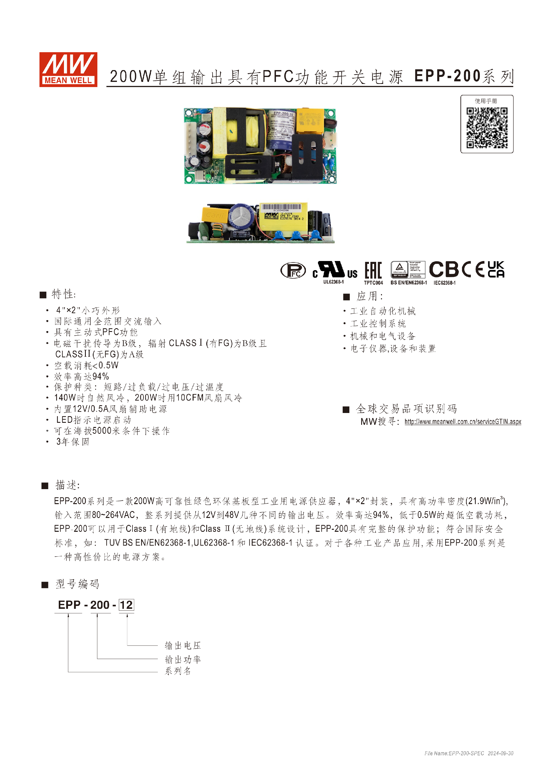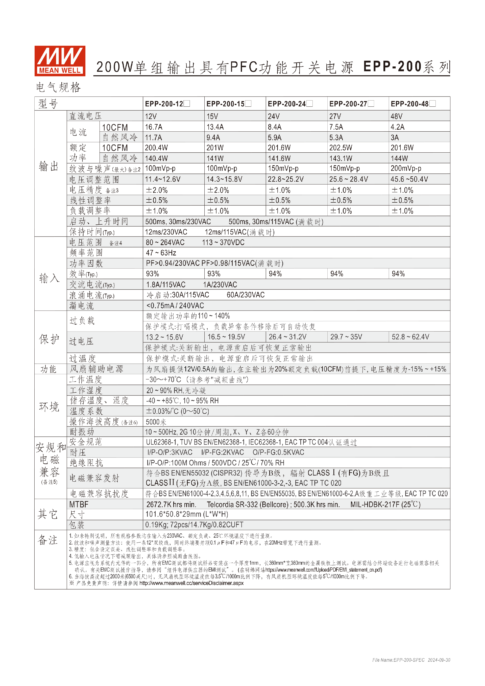臺灣明緯EPP-200系列200W單組輸出開關電源-工業(yè)用-東莞市誠緯實業(yè)有限公司-