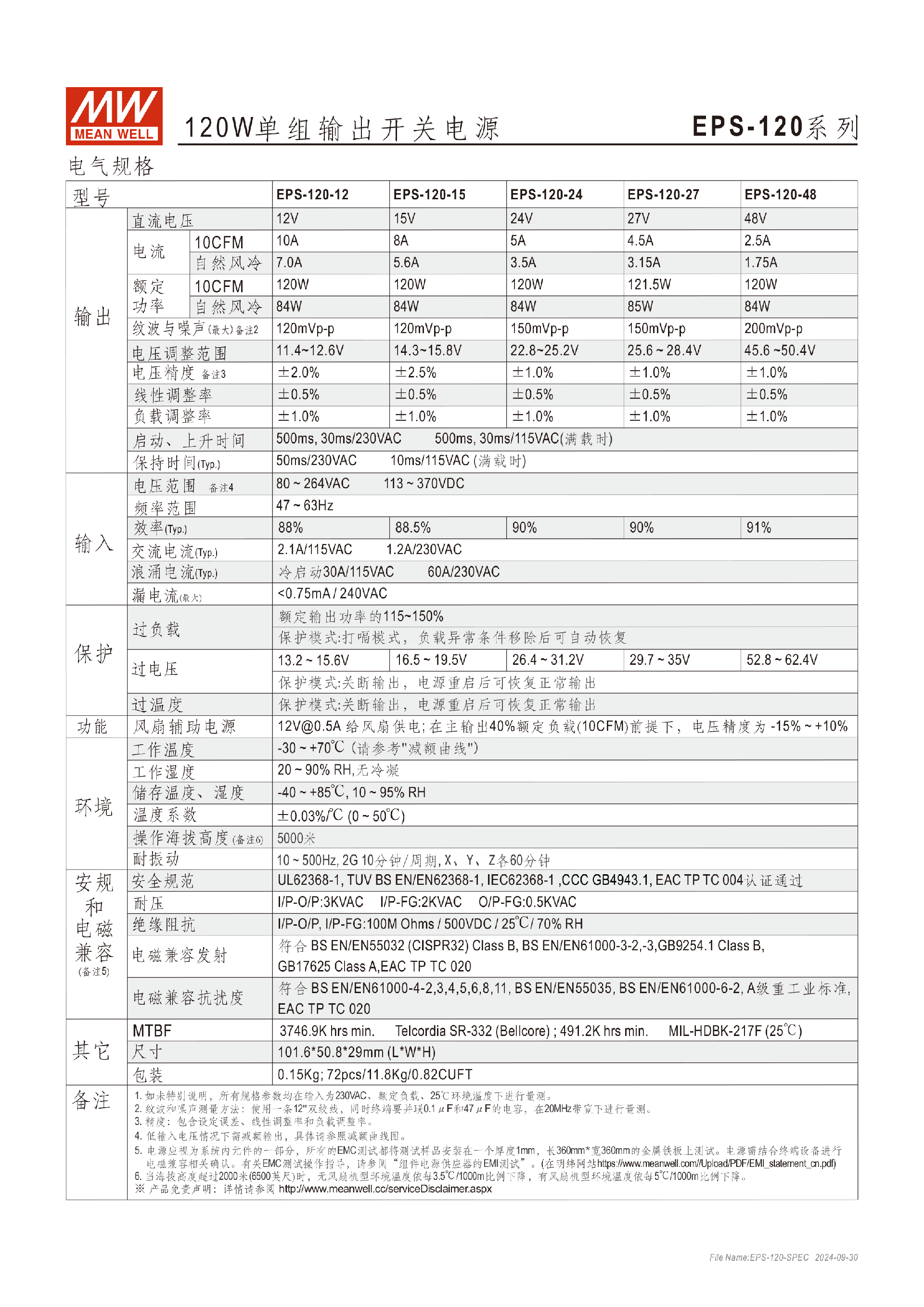 臺(tái)灣明緯EPP-100系列100W單組輸出開關(guān)電源