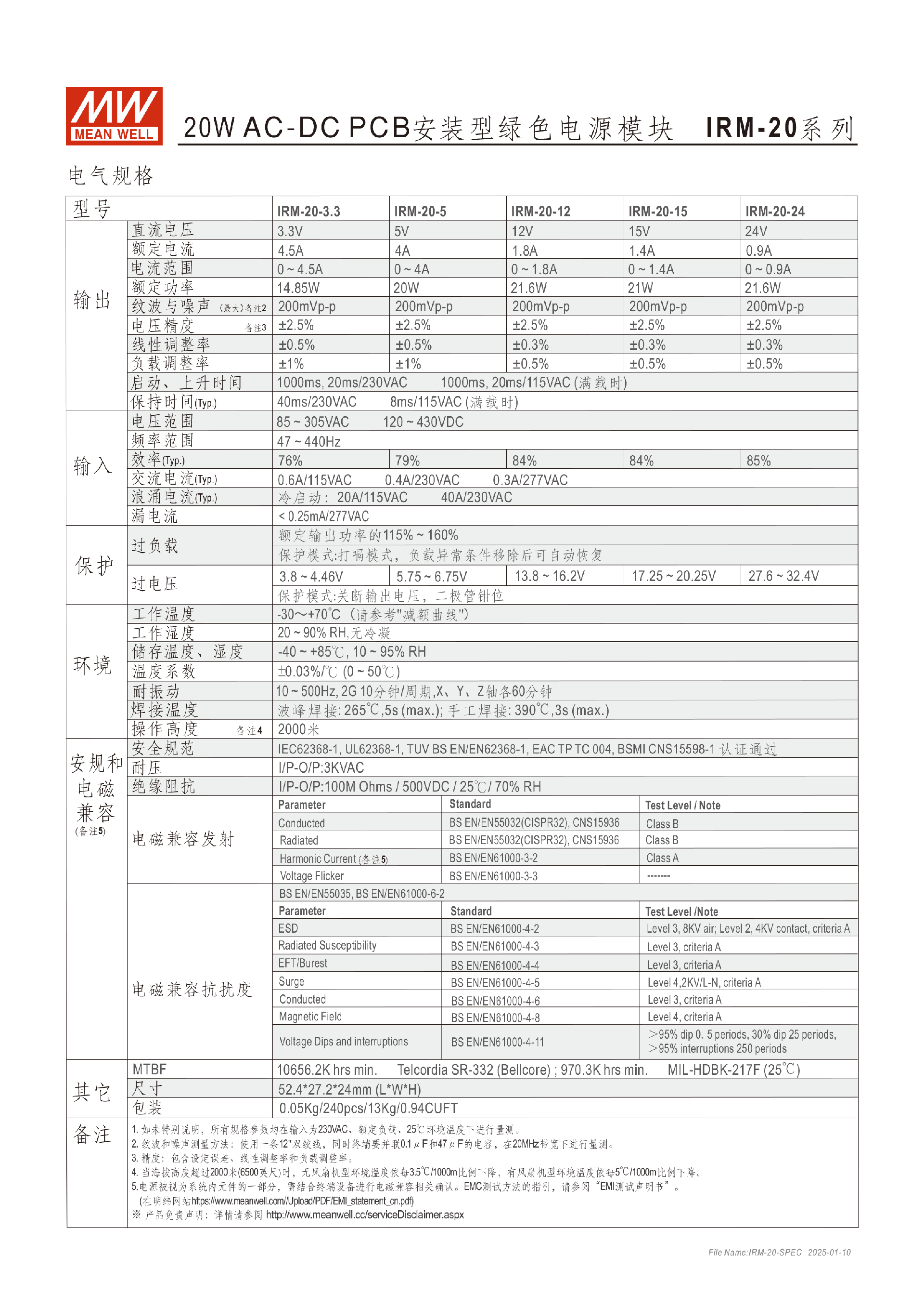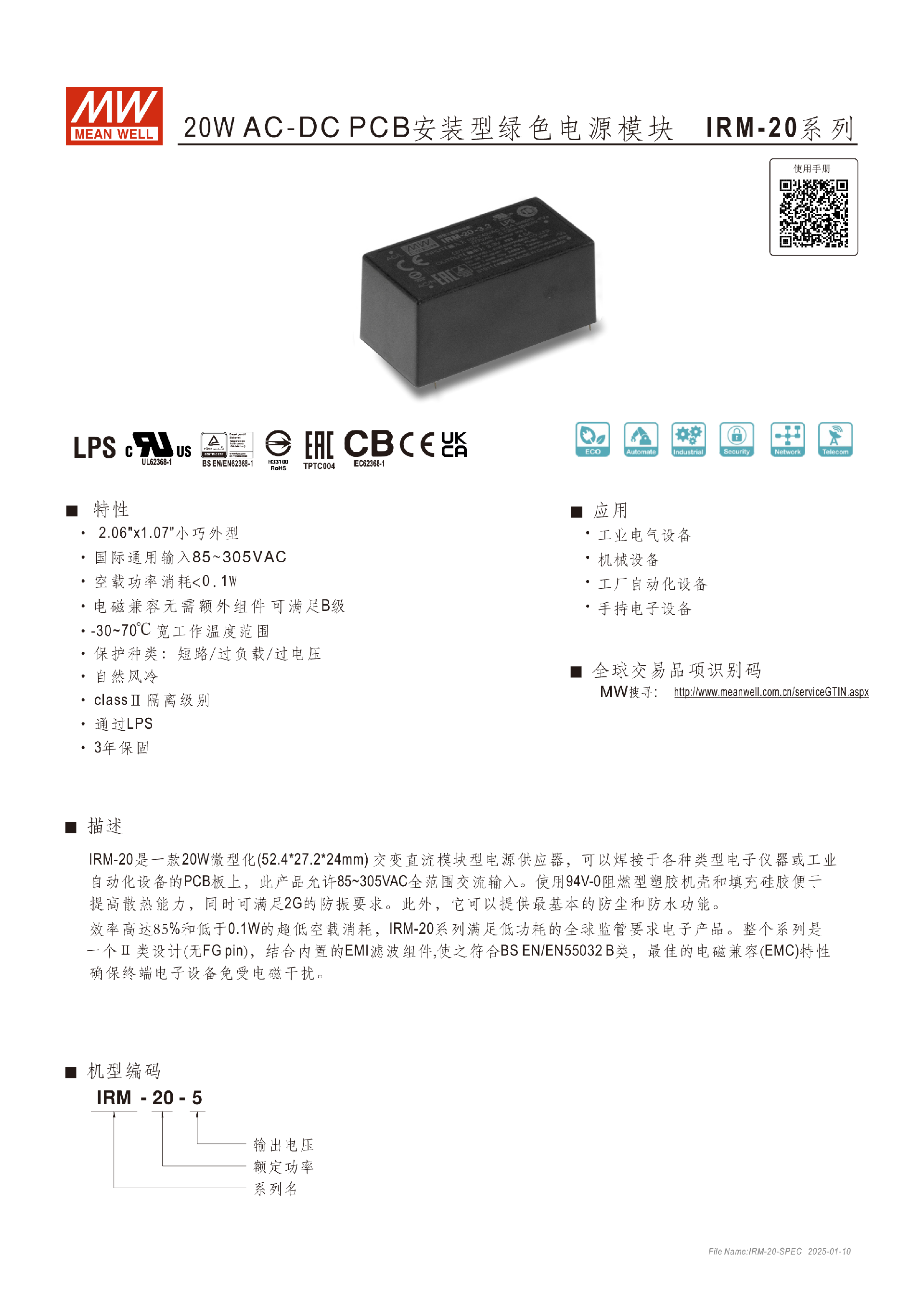 明緯IRM-02系列2W膠囊型電源