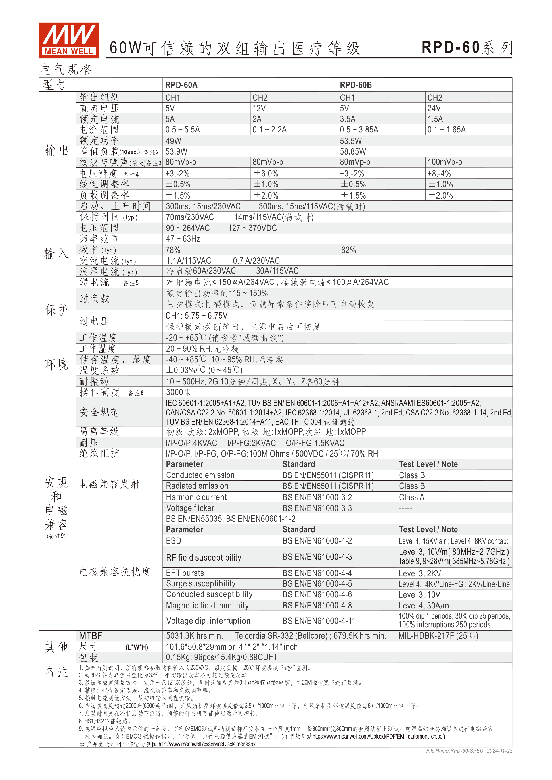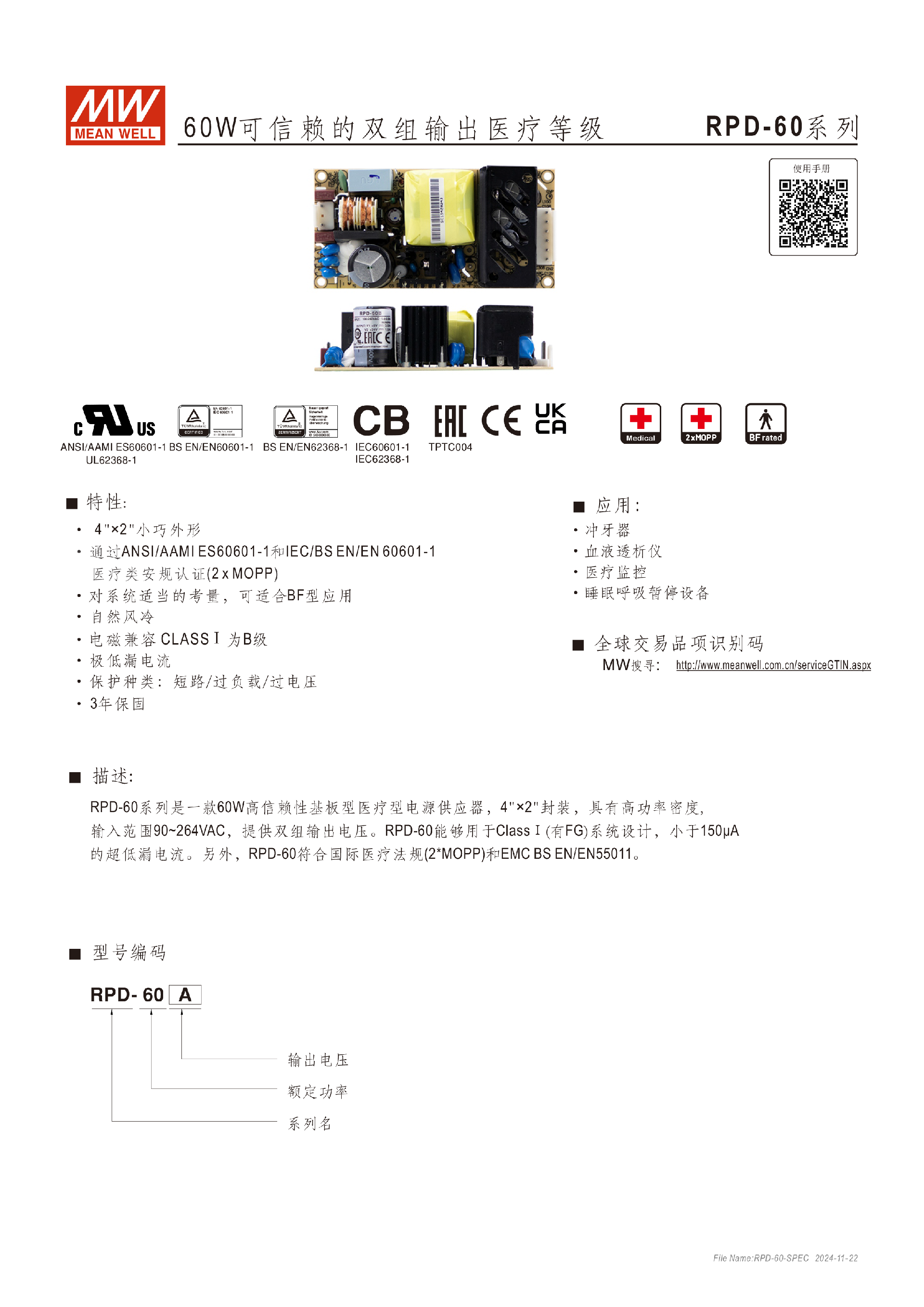 臺灣明緯RPD-60系列60W雙組輸出醫(yī)療型電源-醫(yī)療用-東莞市誠緯實業(yè)有限公司-